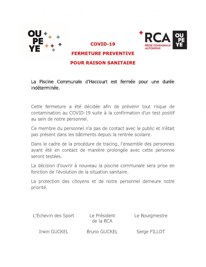 Pour toute ANNULATION, merci de contacter la piscine de Haccourt directement au 04 267 07 (...)